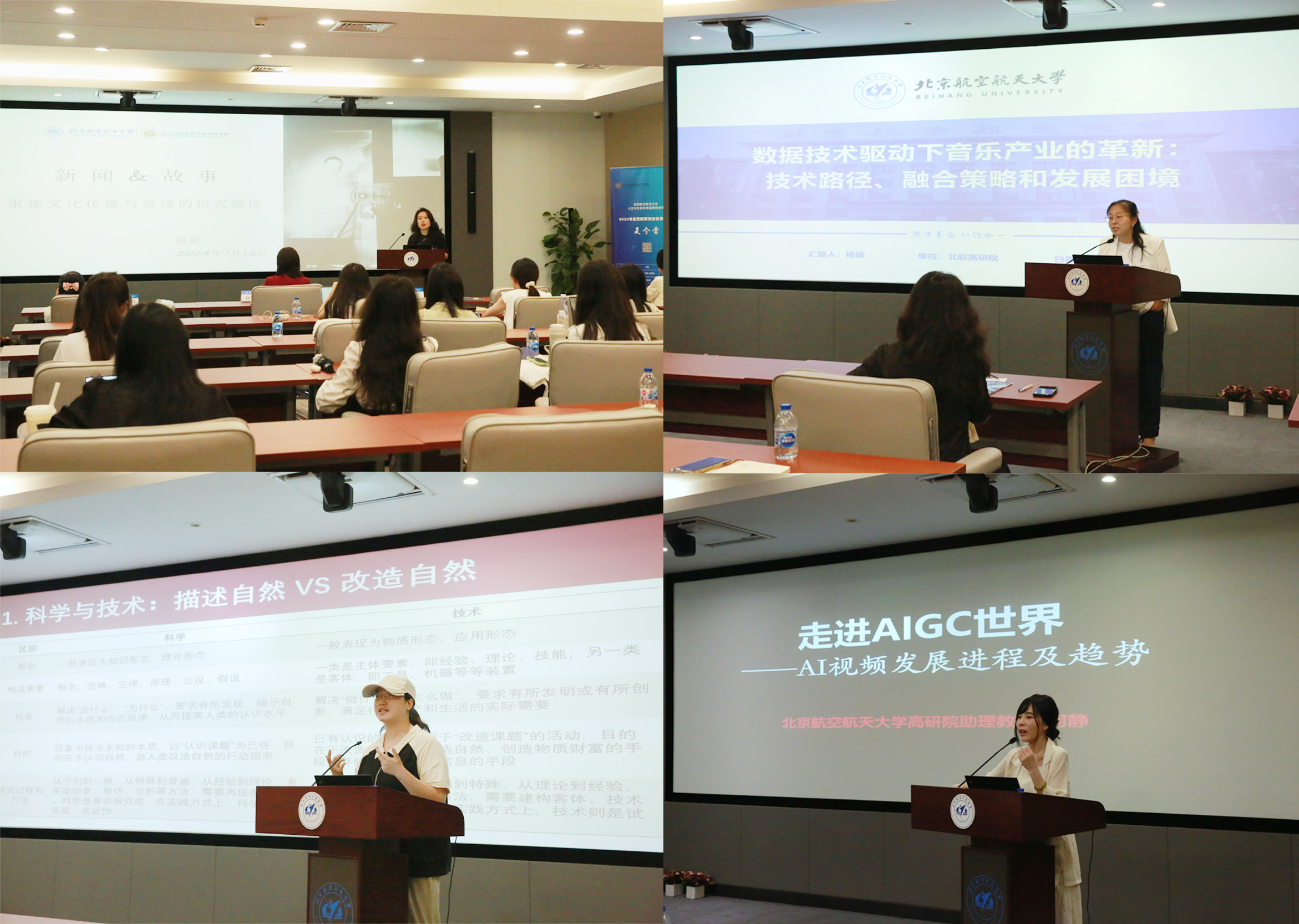 在文化传播与管理分营,陈思老师围绕重建文化传播与管理形式理论的主题展开分享,就从不同角度如何讲好中国故事这一问题与各位营员进行了深入讨论。在历史与观念角度,陈思老师从“讲故事的人”“故事模式与信息模式”“新闻与小说”三个切面阐释了故事与新闻之间的关系。杨扬老师的研究聚焦于文化与科技融合角度,以音乐产业为研究对象,分析了数据技术如何推动音乐产业发生变革,探讨了大数据与音乐产业融合的路径和趋势。何静老师以视频为例分享了对AIGC的看法和观点。通过展示个人AI视频作品让营员感受到了AI生成视频效率高,内容丰富的特点,同时向营员介绍了sora,stable video等AI视频工具,运用通俗易懂的语言向营员解释了其背后的运行逻辑。高泽晋老师从理论层面对科学与技术的关系进行了探讨,同时立足实践层面以科学家经典故事研习项目和海淀区生物多样性保护项目为例对科学传播和技术扩散进行了分享。